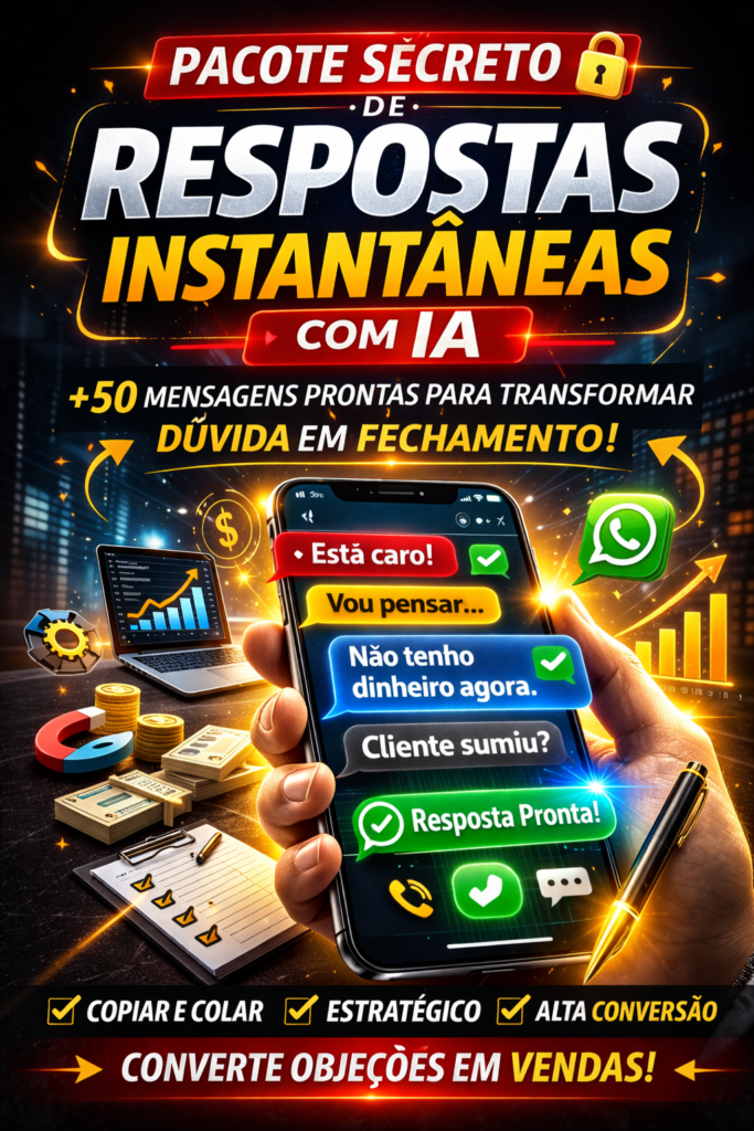 3. Scripts de Vendas Prontos para WhatsApp e Atendimento: Modelos estratégicos para responder clientes, quebrar objeções e fechar mais negócios.